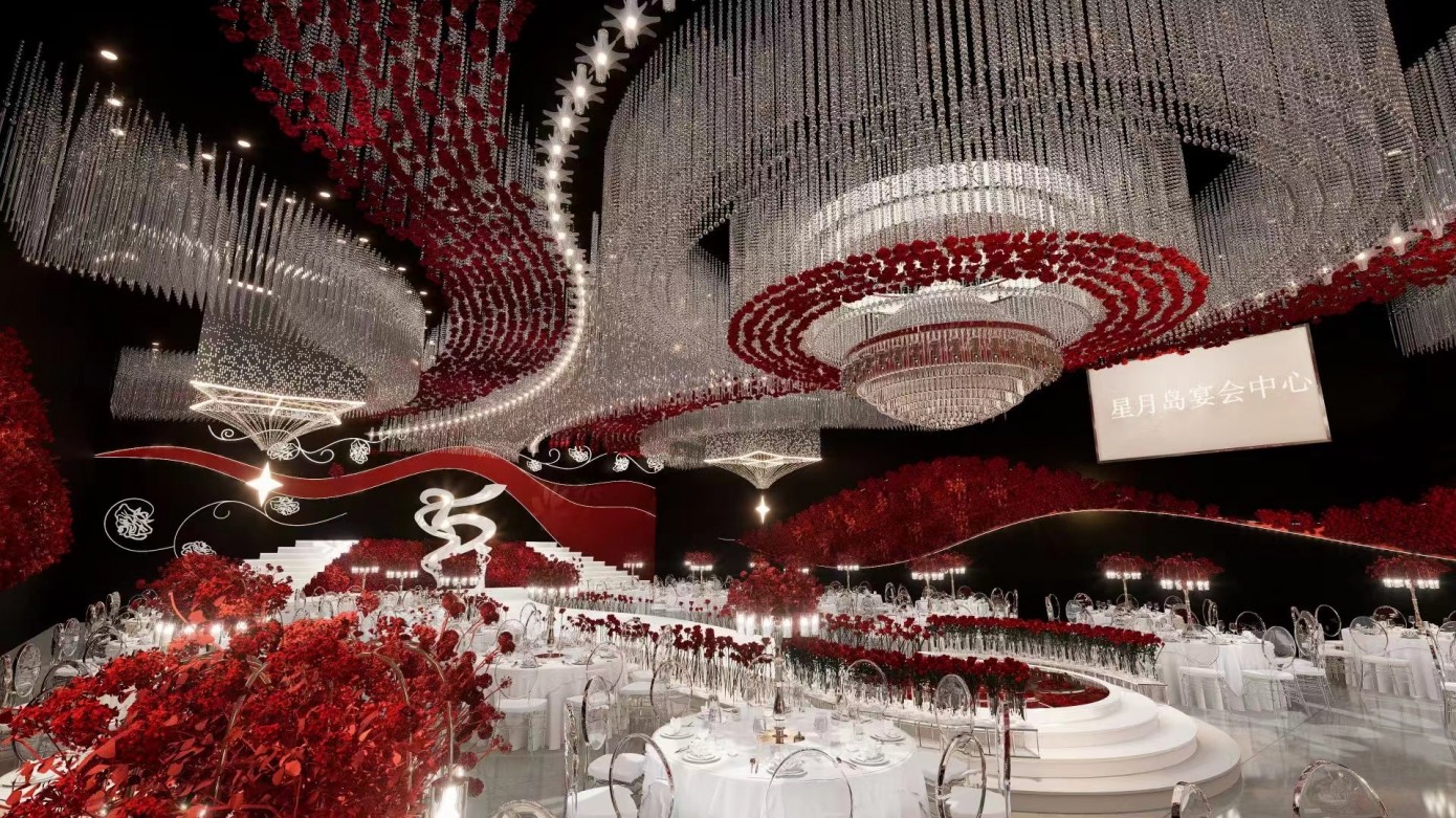 设计理念上,我们以 “主题故事型” 为核心定位,为礼宴中心提供一体式规划打造,让每个婚礼堂都成为有温度、有专属主题的空间。业务应用场景广泛,包括婚礼堂、政府项目、公园景观美化、网红打卡地、酒店、KTV 等,项目已遍布全国,覆盖山西、成都、天津、北京、湖南、黑龙江、遵义等多个省市。