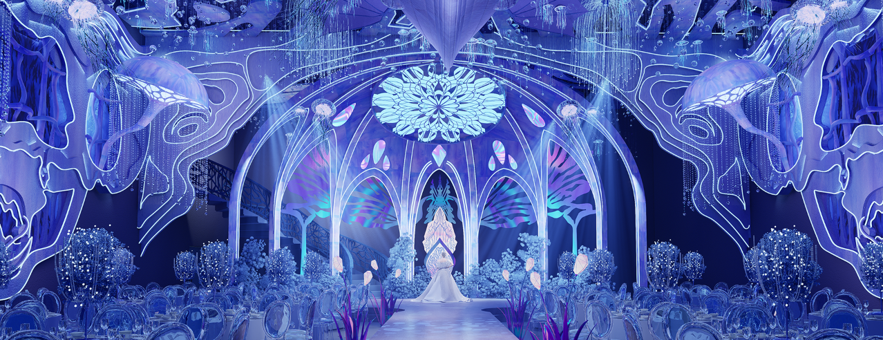 设计理念上,我们以 “主题故事型” 为核心定位,为礼宴中心提供一体式规划打造,让每个婚礼堂都成为有温度、有专属主题的空间。业务应用场景广泛,包括婚礼堂、政府项目、公园景观美化、网红打卡地、酒店、KTV 等,项目已遍布全国,覆盖山西、成都、天津、北京、湖南、黑龙江、遵义等多个省市。