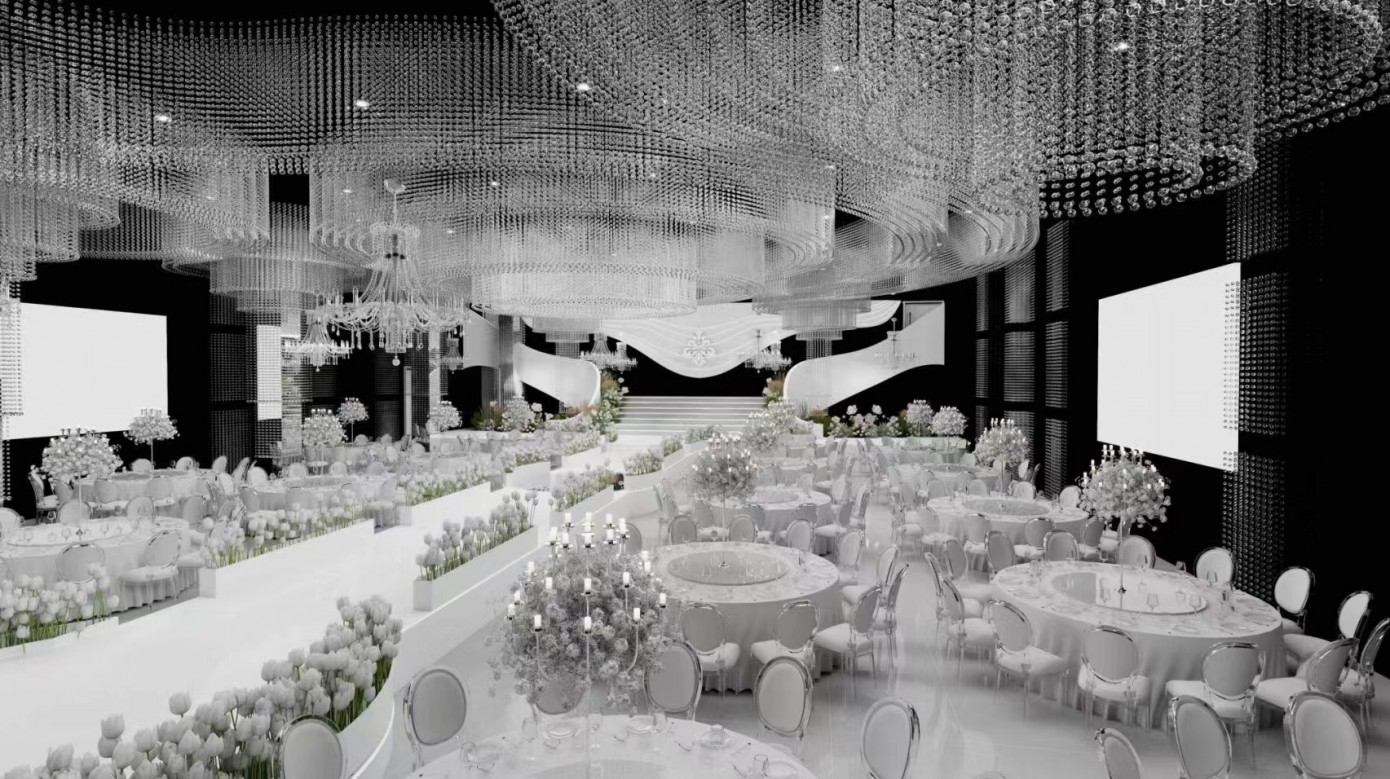婚礼堂的公区设计宛如一幅精心绘制的画卷,承载着新人对美好婚礼的憧憬,也为宾客营造出难忘的体验空间。